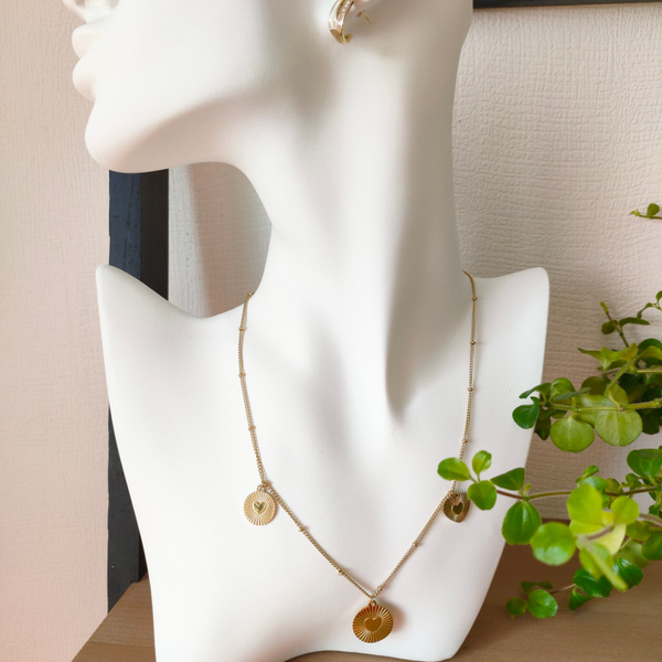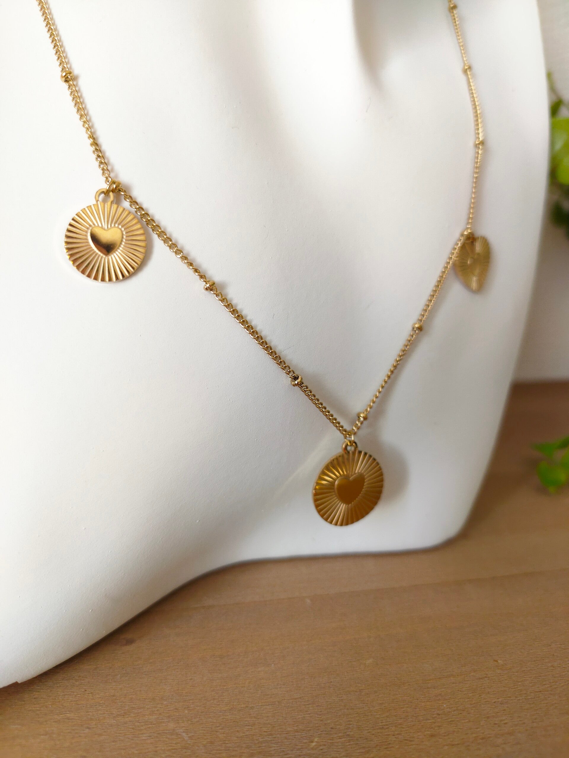 Stainless steel, 45 cm lang met 3 bedels. Een mooie en leuke ketting om dagelijks te dragen.