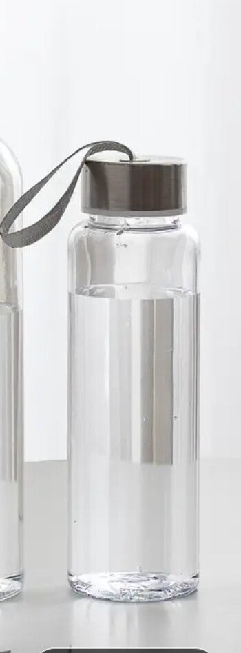 Wij hebben de oplossing: een klein glazen flesje van 300 ml. Hij past in bijna iedere tas en weegt, ondanks dat het glas is, niet veel. Hij sluit super goed af en je kunt de fles lekker in je hand nemen of aan het koordje.