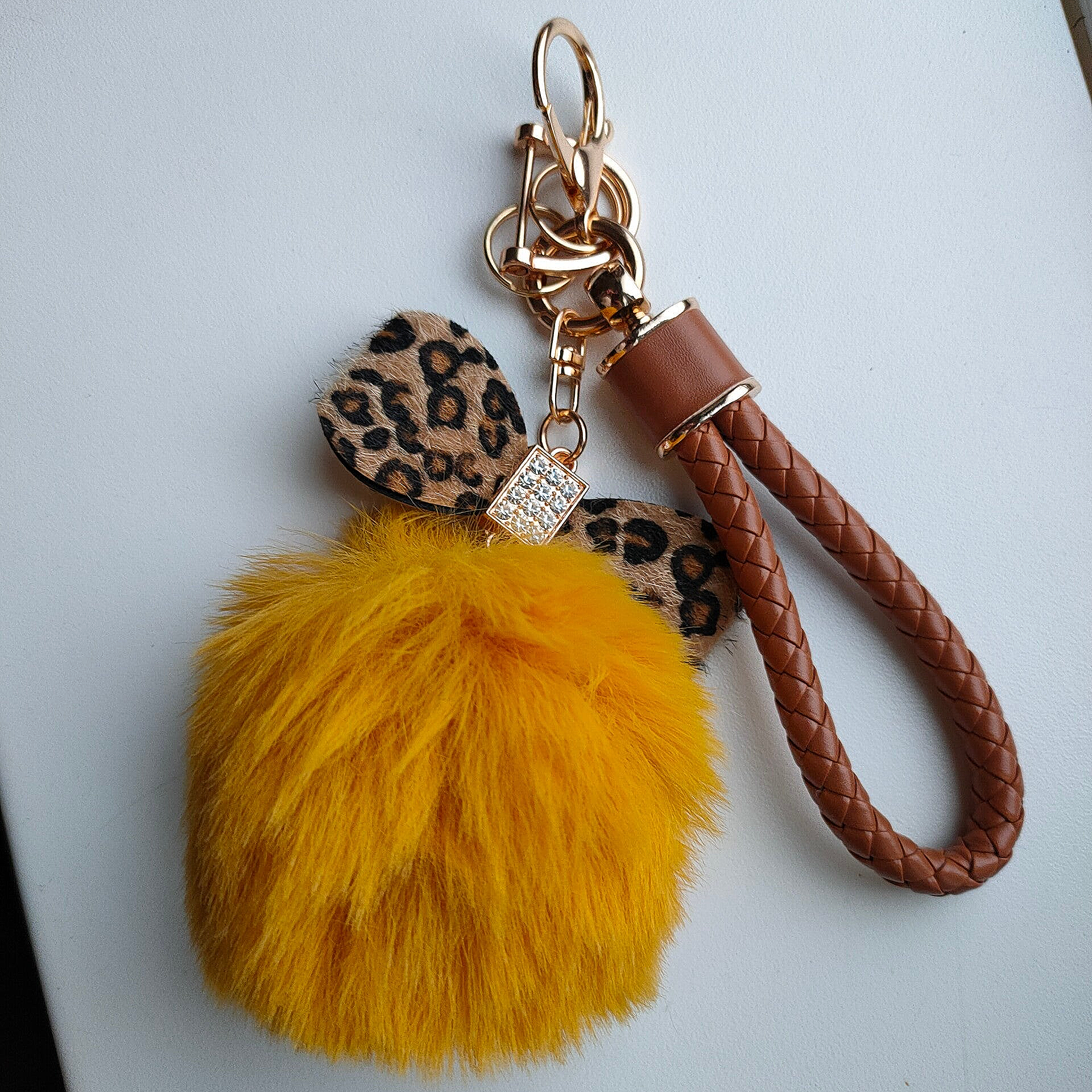 Deze gele tassen charm geeft een grote glimlach op gezicht. De mooie okergele kleur van het pluche bolletje en de strik die daar boven op zit, geven je Charm een vrolijke uitstraling.